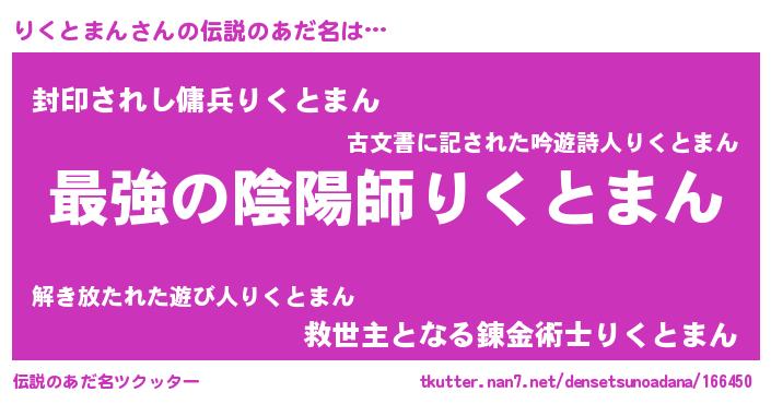 | 女子向けラノベタイトル風あだ名 | 『りくとまんの婚約者』『闇のりくとまん』 |