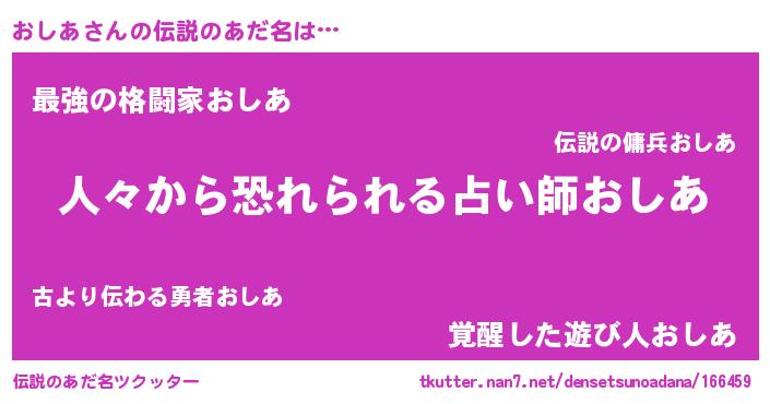 | ヒーロー風カッコイイあだ名 | 『正義の使者おしあ』『魔戒騎士オシ』 |