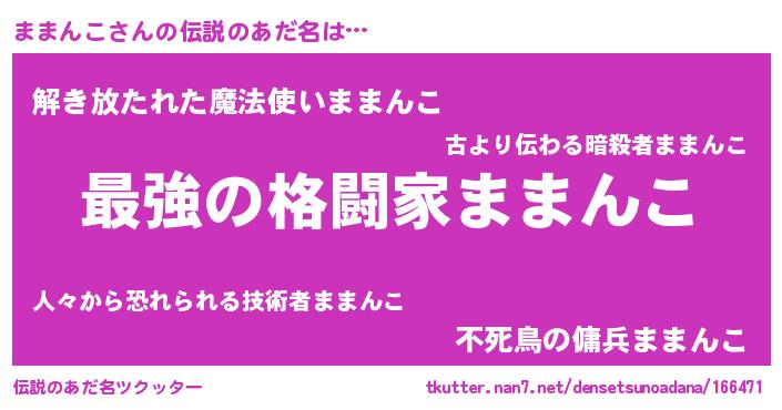 | ポケモン風あだ名 | 『ママンダネ』『ヒママンコ』 |