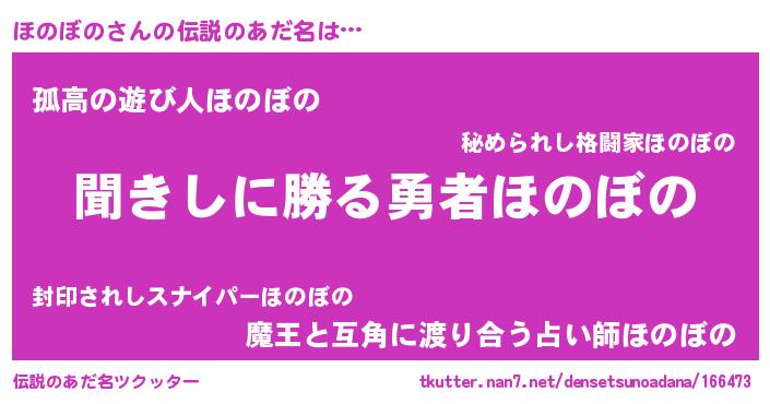 | ヒーロー風カッコイイあだ名 | 『ネオホノボノ』『魔戒騎士ホノ』 |
