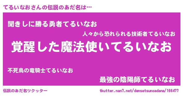 | ヒーロー風カッコイイあだ名 | 『仮面テルダー』『魔戒騎士テル』 |
