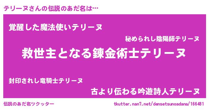 | ポケモン風あだ名 | 『テックウザ』『テリゴンZ』 |