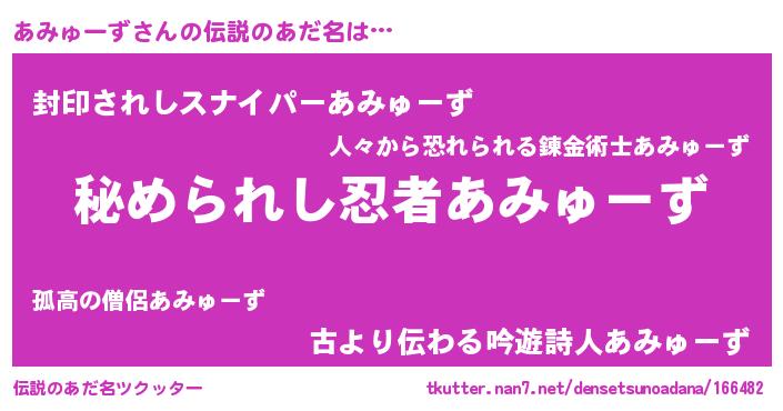| ヒーロー風カッコイイあだ名 | 『ウルトラあみゅーずマン』 |