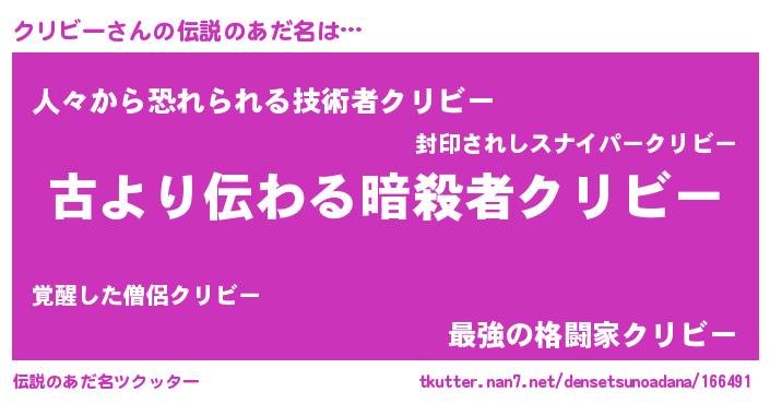 | ヒーロー風カッコイイあだ名 | 『ネオクリビー』『愛の使者クリビー』 |