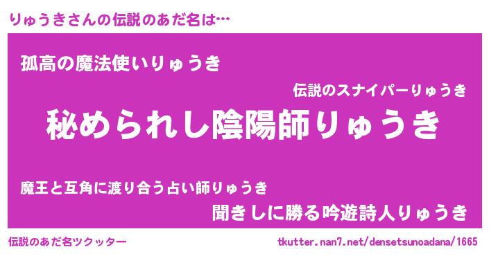 | ヒーロー風カッコイイあだ名 | 『ウルトラりゅうきマン』『暗黒騎士リュ』 |