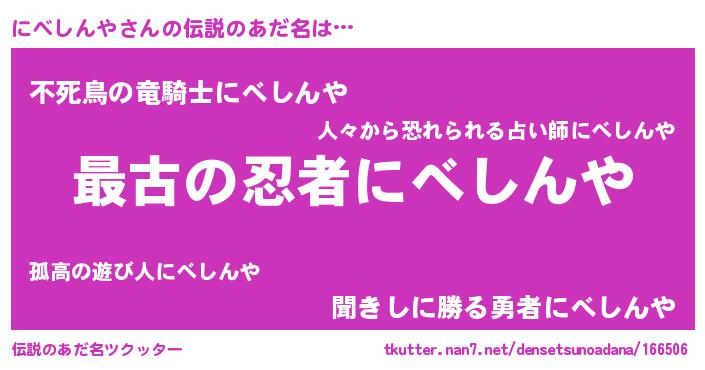 | 男性向けラノベタイトル風あだ名 | 『やはりにべしんやの青春ラブコメはまちがっている 』 |