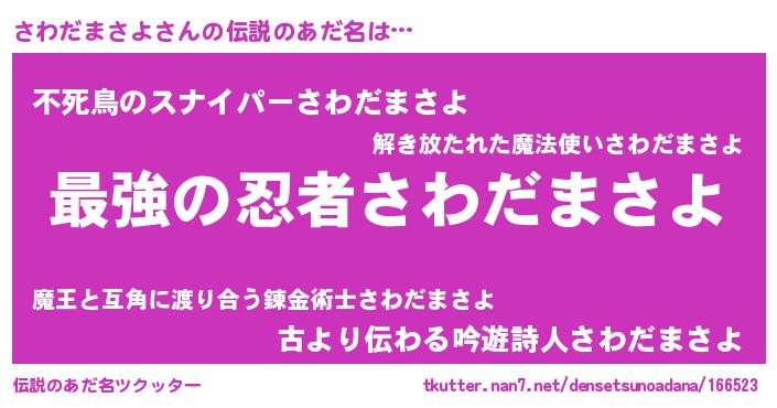 | 男性向けラノベタイトル風あだ名 | 『Re:さわだまさよから始める異世界生活』 |