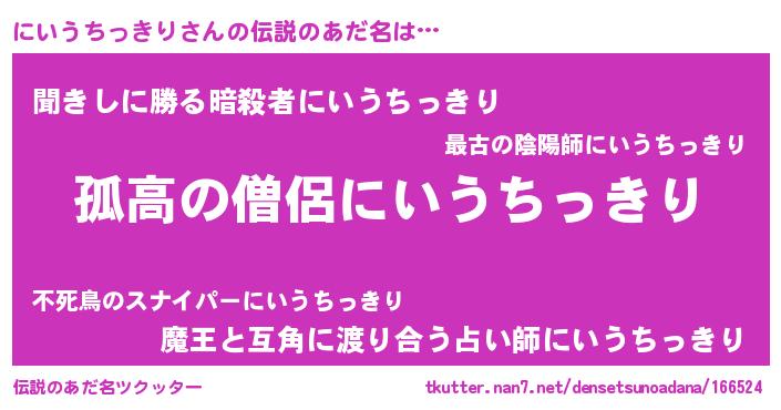 | 意味不明あだ名 | 『住所不定無職にいうちっきり(50歳)』 |