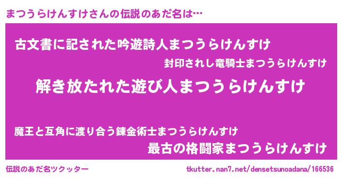 | 意味不明あだ名 | 『とにかく怪しいまつうらけんすけ』 |