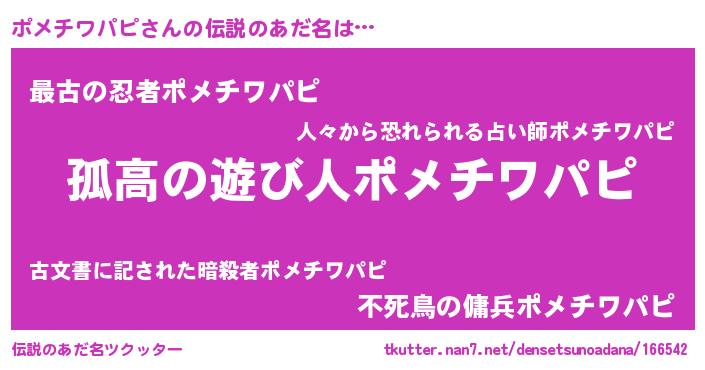 | 意味不明あだ名 | 『自称ポメチワパピ』 |