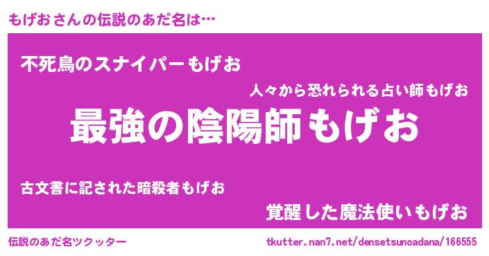 | ヒーロー風カッコイイあだ名 | 『究極戦士モゲオ』『ウルトラもげおマン』 |