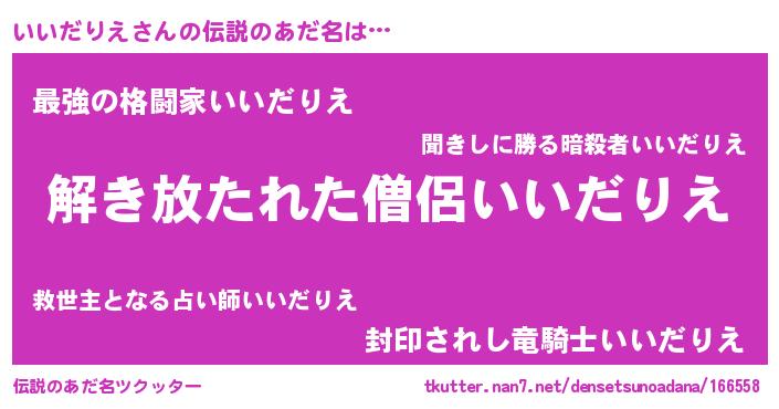 | 意味不明あだ名 | 『とにかく怪しいいいだりえ』 |