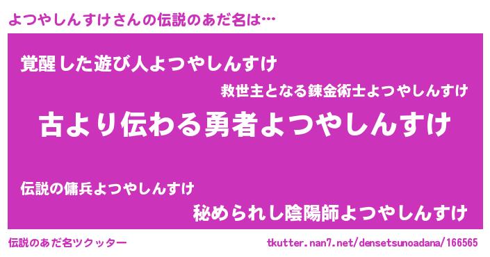 | ヒーロー風カッコイイあだ名 | 『ネオヨツヤシンスケ』『天弓騎士ヨツ』 |