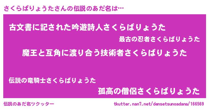 | ヘコむあだ名 | 『さくらばりょうた(小並感)』『さくお』 |