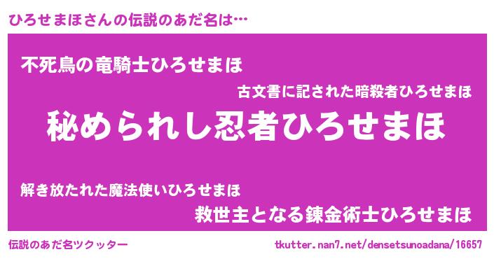 | 意味不明あだ名 | 『ひろせまほフォーエバー』 |