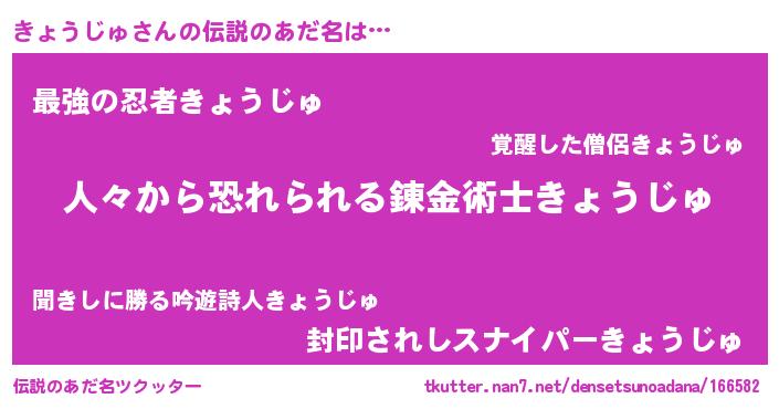 | 意味不明あだ名 | 『眠気覚ましガムきょうじゅ味』 |