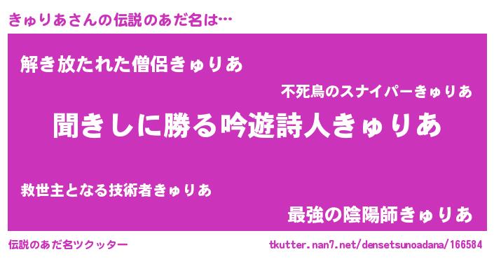 | ヘコむあだ名 | 『きゅりあ(笑)』『きゅっ子』 |