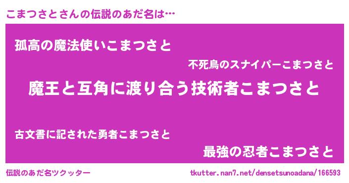 | 男性向けラノベタイトル風あだ名 | 『ノーゲーム・ノーコマツサト』 |