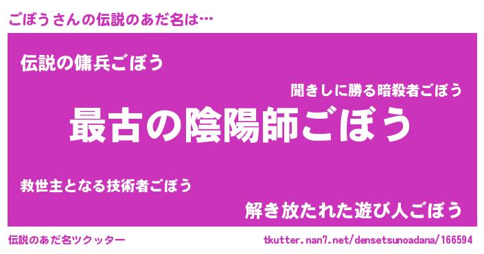 | ヒーロー風カッコイイあだ名 | 『仮面ゴボダー』『ウルトラごぼうマン』 |