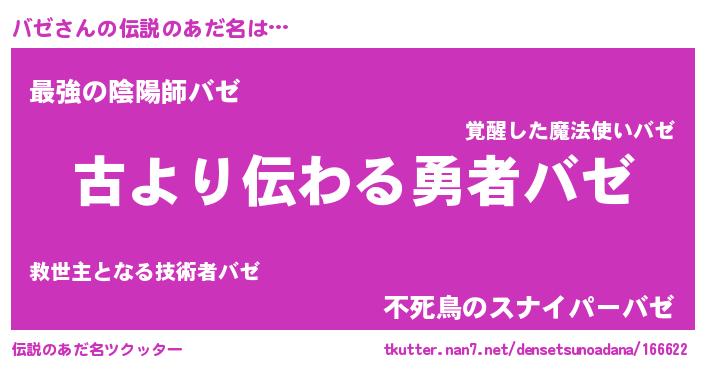 | ファンタジー風あだ名 | 『バゼディッシュ』『エターナルバゼー』 |