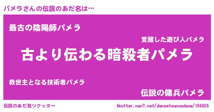 | ヒーロー風カッコイイあだ名 | 『仮面パメダー』『ネオパメラ』 |