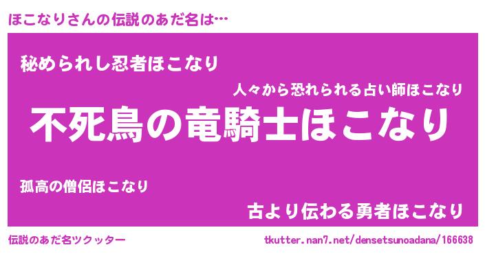 | 女子向けラノベタイトル風あだ名 | 『ほこなり姫と円卓の騎士』 |