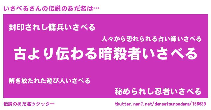 | 意味不明あだ名 | 『自称いさべる』『永久保存いさべる』 |