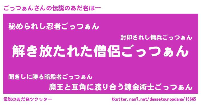 | 男性向けラノベタイトル風あだ名 | 『ダンジョンにごっつぁんを求めるのは間違っているだろうか』 |