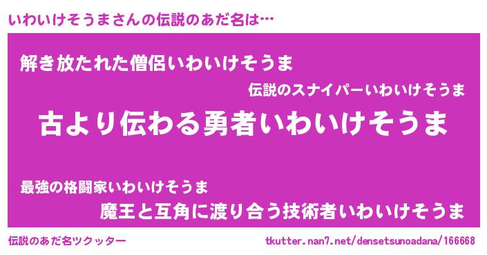 | ヒーロー風カッコイイあだ名 | 『ネオイワイケソウマ』『仮面イワダー』 |