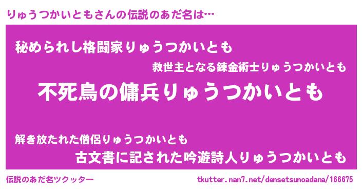 | 胡散臭い通販商品みたいなあだ名 | 『モテモテ間違いなし水晶球…その名も「りゅうつかいとも」』 |