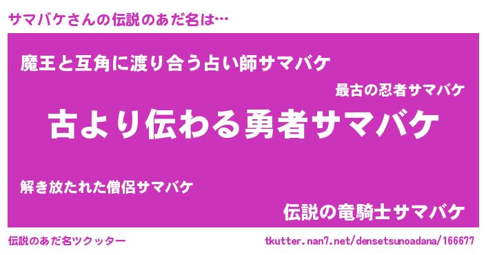 | ヒーロー風カッコイイあだ名 | 『ネオサマバケ』『仮面サマダー』 |