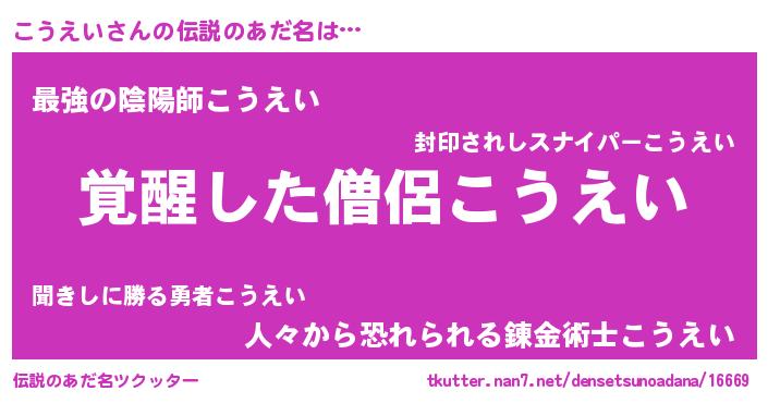 | ヒーロー風カッコイイあだ名 | 『炎刃騎士コウ』『ウルトラこうえいマン』 |