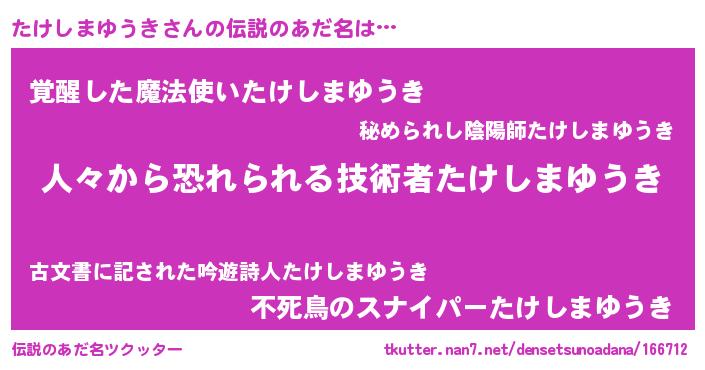 | 女子向けラノベタイトル風あだ名 | 『たけしまゆうきなんてお断りですっ。』 |