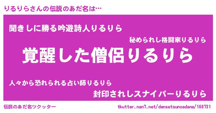 | ヘコむあだ名 | 『りるっ子』『りるりら(笑)』 |