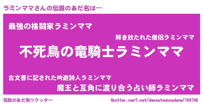 | ファンタジー風あだ名 | 『ラミフェル』『エターナルラミンママー』 |
