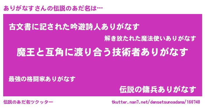 | ヘコむあだ名 | 『ありがなす(小並感)』『ありふぇ~』 |