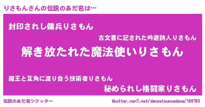 | 意味不明あだ名 | 『住所不定無職りさもん(9歳)』 |