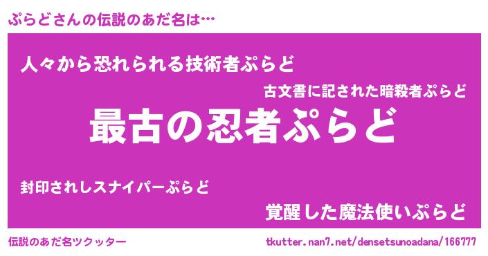 | ヒーロー風カッコイイあだ名 | 『ウルトラぷらどマン』『愛の使者ぷらど』 |