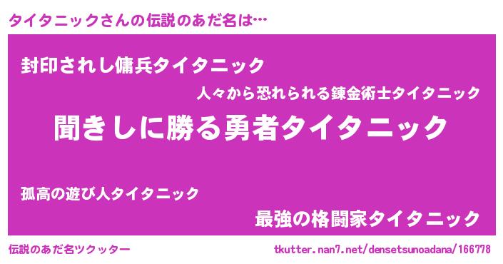 | ヒーロー風カッコイイあだ名 | 『ネオタイタニック』 |