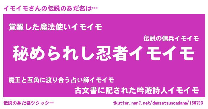 | ファンタジー風あだ名 | 『エターナルイモイモー』『ゼイモトゥ』 |