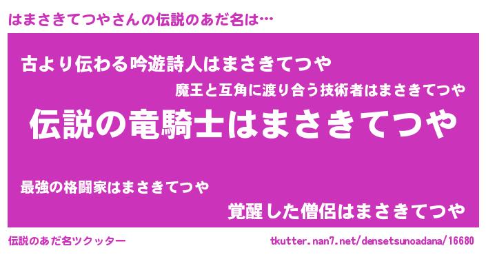| 意味不明あだ名 | 『自称はまさきてつや』 |