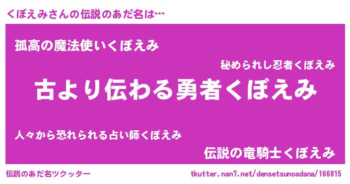 | 意味不明あだ名 | 『永久保存くぼえみ』『ペロリンくぼえみ』 |