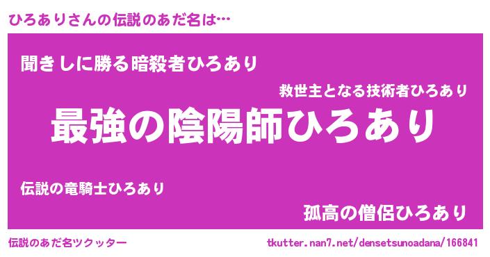 | 意味不明あだ名 | 『ひろありフォーエバー』 |