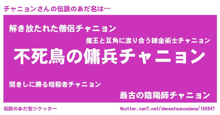 | ヒーロー風カッコイイあだ名 | 『スーパーチャニョン』『黄金騎士チャ』 |