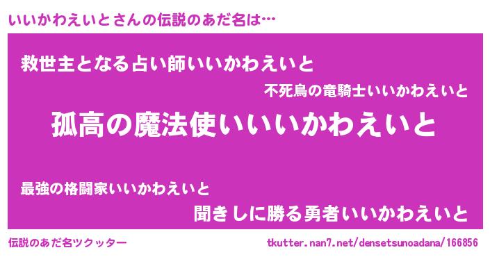| 胡散臭い通販商品みたいなあだ名 | 『信頼と実績のサプリメント…その名も「いいかわえいと」』 |