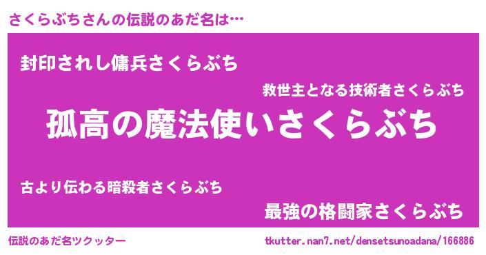 | 意味不明あだ名 | 『自称さくらぶち』『ペロリンさくらぶち』 |