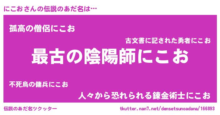 | 意味不明あだ名 | 『住所不定無職にこお(93歳)』 |