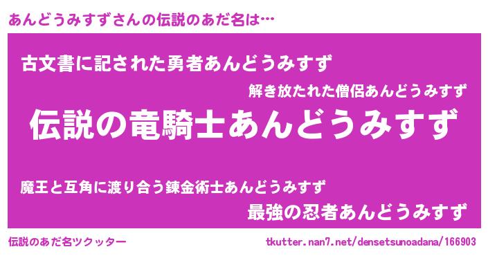 | ヘコむあだ名 | 『あんにー』『あんどうみすず(遠い目)』 |