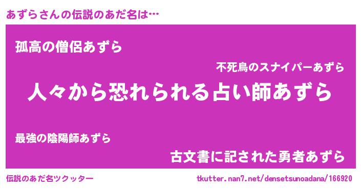 | 欧米人風あだ名 | 『ダニエルあずら』『アンジェラ・あずら』 |