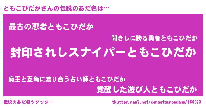 | 意味不明あだ名 | 『自称ともこひだか』 |
